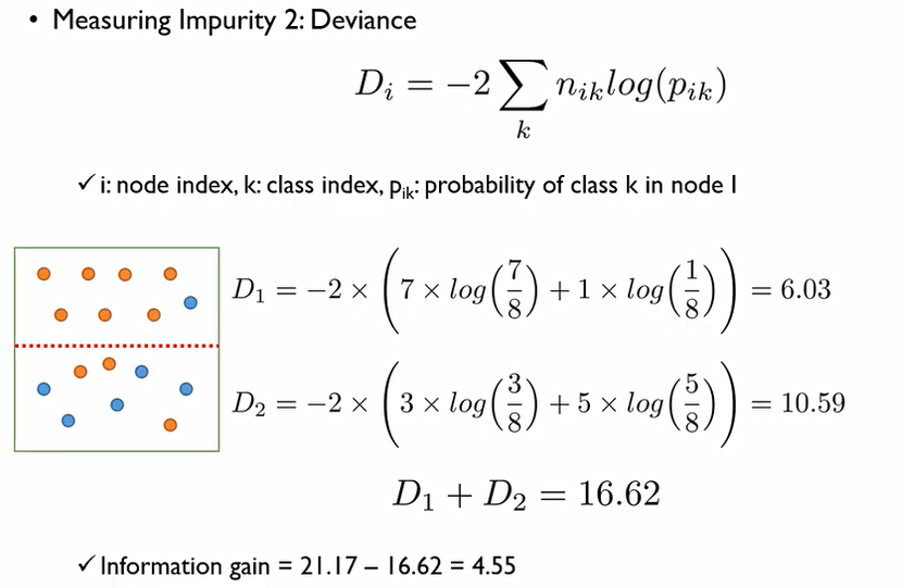 이전에 나온 0.47값에서, split을 함으로써 impurity가 0.34로 감소하게 됨. 이때 0.47 - 0.34 = 0.13이 나오는데, 이 값이 split을 함으로써 얻는 정량적인 효과라고 볼 수 있음. 즉, information gain이 가장 크게 나오는 영역구분선을 찾아야 한다.
