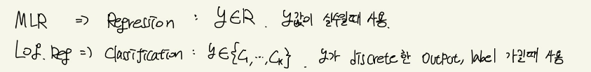 Logistic은 주어진 데이터가 있을 때, 이 데이터들을 잘 구분하는 하나의 직선을 구하는 것.