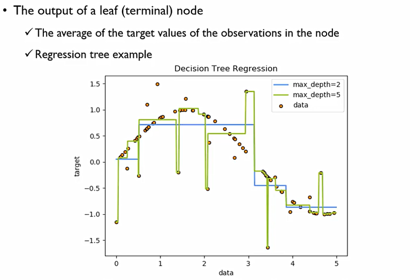 회귀모형은 특정 영역에 대한 평균값으로 계산을 하기에 다음과 같이 계단식의 함수가 된다. Depth의 수에 따라 다음과 같이 그래프 달라진다.