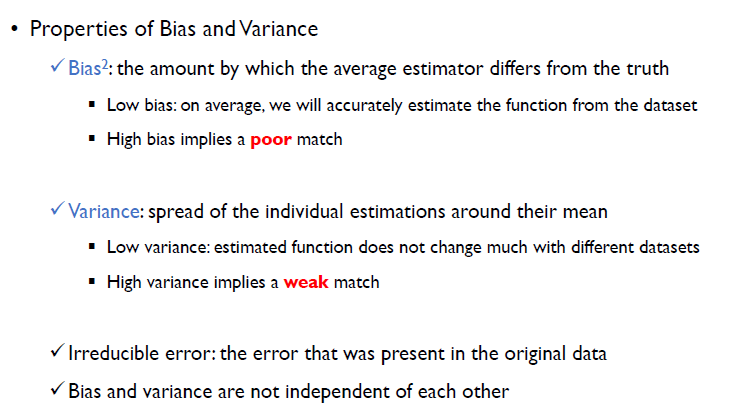 Bias란 평균 추정값이 실제값과 얼마나 차이가 나는지를 나타내주는 것. 즉, low bias여야 실제 정답을 잘 추정할 수 있다는 것이다.