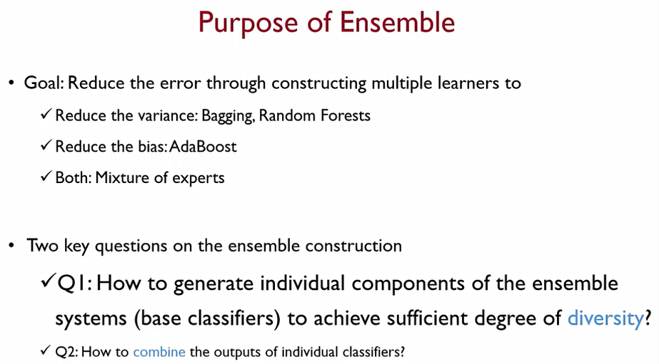 똑같은 데이터가 주어져도, 각각의 알고리즘이 정답을 찾아가는 과정이나 로직은 수학적으로 모두 다르다. 이때 한쪽이 무조건 우월하지 않으므로, 다양한 모델이 서로 다른 class에 대한 boundaries나 fitted function을 만든다. 이에 각자가 가지는 단점을 상쇄를 시킬 수 있다.