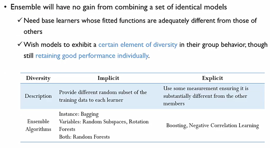 앙상블 시스템의 각 개별 요소들을 얼마나 서로 다양성을 갖도록 구성할 것이냐. 이때 다양성이 매우 중요하다.
