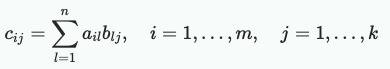 - 즉, A의 i번째 행의 요소와 B의 j번째 열의 요소들을 곱해서 더한 것과 같습니다.