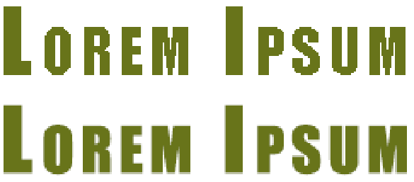 글자에도 안티앨리어싱 효과를 적용할 수 있다. 작은 글자들은 선명도때문에 이 효과를 적용하지 않고 사용하는 경우도 있다.