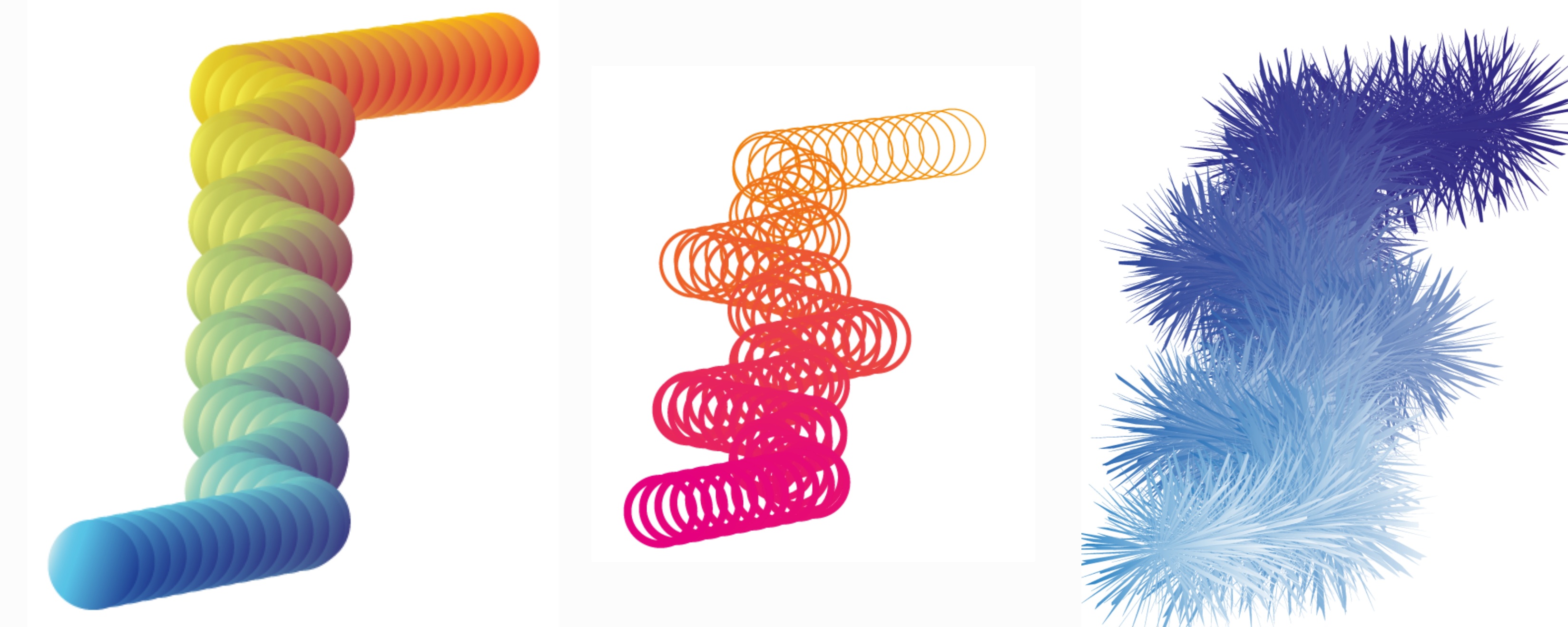 블랜드옵션창을 통해 도형과 도형사이의 개수, 거리 등을 조절할 수 있다. 도형사이에 투명한 패스를 그려 패스 방향대로 도형을 연결할 수 도 있다.