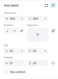 오토레이아웃은 중첩사용도 가능해 다른 디자인툴에는 없는 편리한 기능이지만, 한 번 레이아웃을 적용한 이후 컨텐츠를 넣었다 뺐다 하다보면 레이아웃이 완전히 틀어질 수 있기때문에 꼭 가장 작은 단위부터 오토레이아웃을 적용해준다.