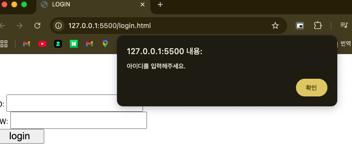 아이디 칸이 비어있다고 팝업 띄우기