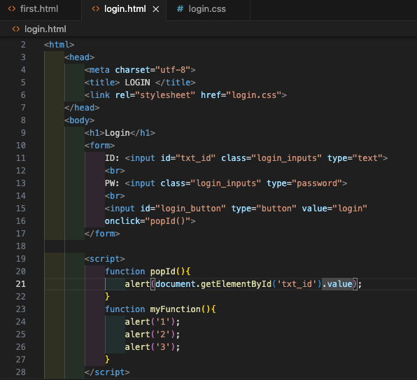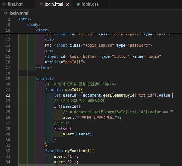 예를들어, 로그인 창에서 아이디 칸이 비어있다면 아이디를 입력해달라고 팝업을 띄우고, 입력되어 있다면 입력된걸 팝업으로 띄워준다.