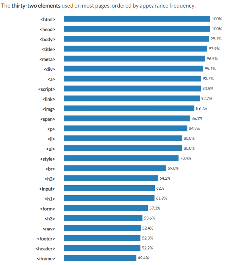 Advanced Web Ranking사이트에 들어가면 자주 사용되는 태그들의 순위를 알 수 있다.