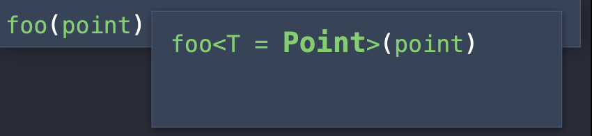 foo 함수가 실행될 때, Swift는 일반 타입 T를 호출 측에서 사용되는 타입(Point)로 바인딩 → foo 호출 컨텍스트에서 T를 Point로 바인딩