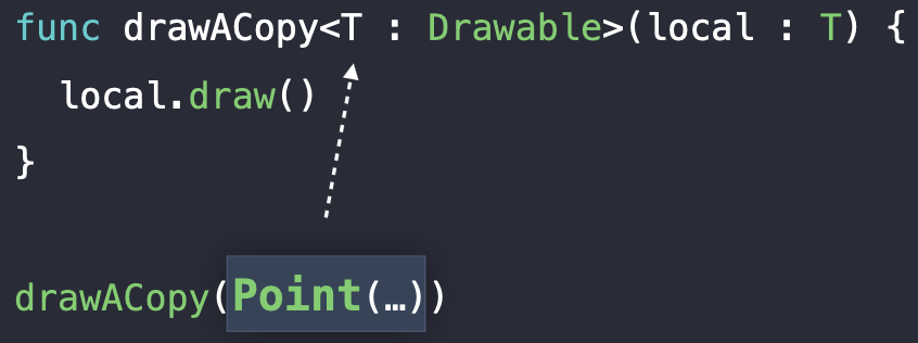 func bar<T: Drawable>(local: T) { … }