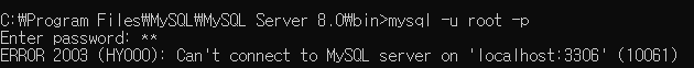 mysql 접속하려고하는데 접속이 되지 않는다.