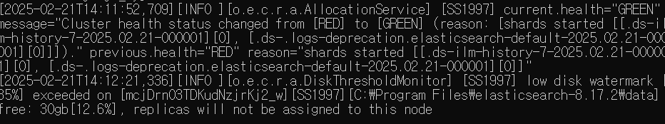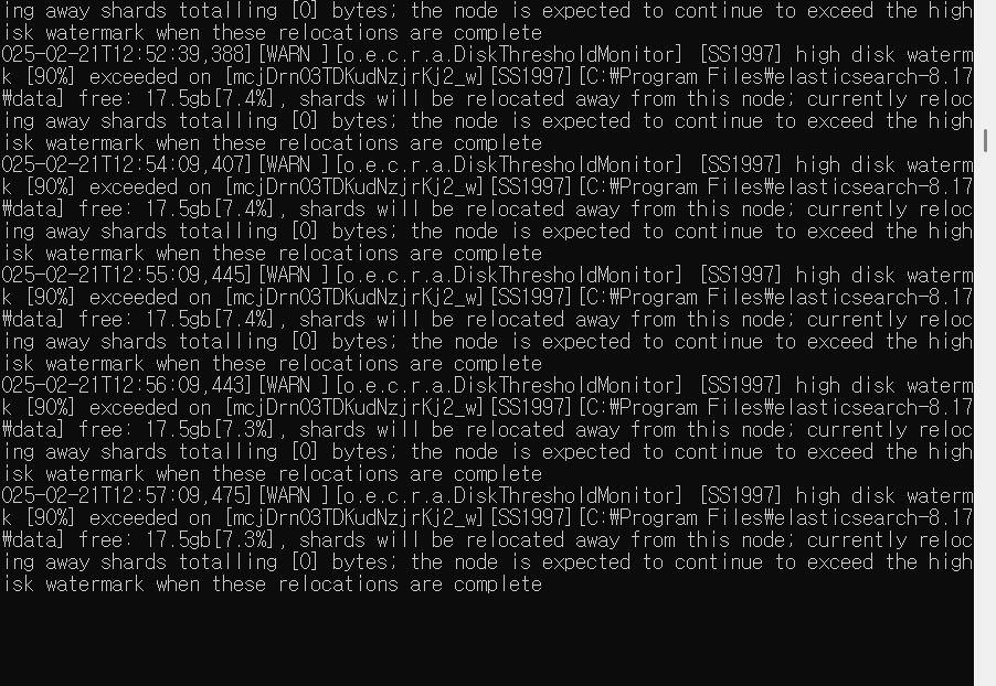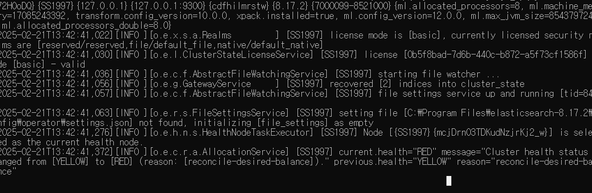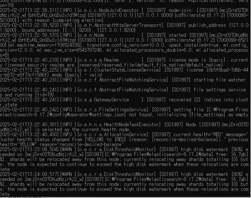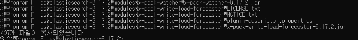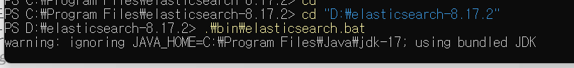 그리고 실행을 한 번 D에서 돌려보고, 정상실행 된다면 rd /s /q "C:\Program Files\elasticsearch-8.17.2"