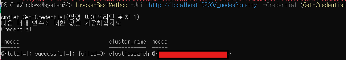 Invoke-RestMethod -Uri "http://localhost:9200/_nodes?pretty" -Credential (Get-Credential)