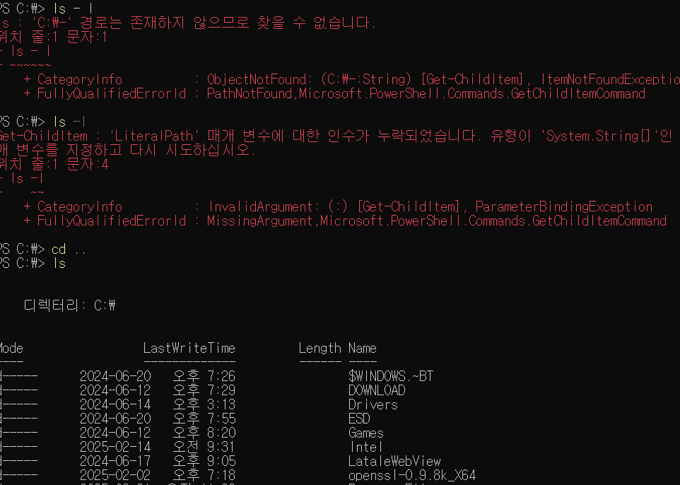 이번엔 또 뭐여... 파워 셀은 또 이동이 안되네, 차라리 아예 리눅스면 모를까 윈도우 파워 셀은 극혐이다. 윈도우는 정확한 파일을 쌍따옴표로 감싸줘야한다.