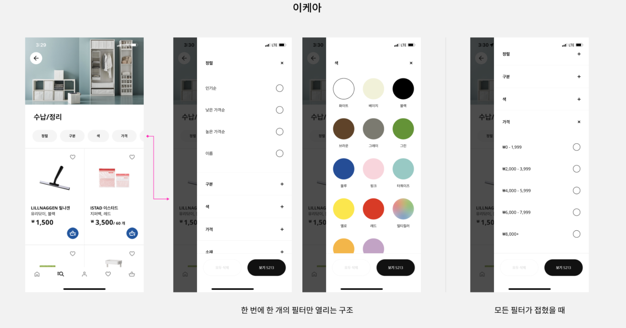 유저가 한눈에 전체 필터와 위계를 파악할 수 있다.