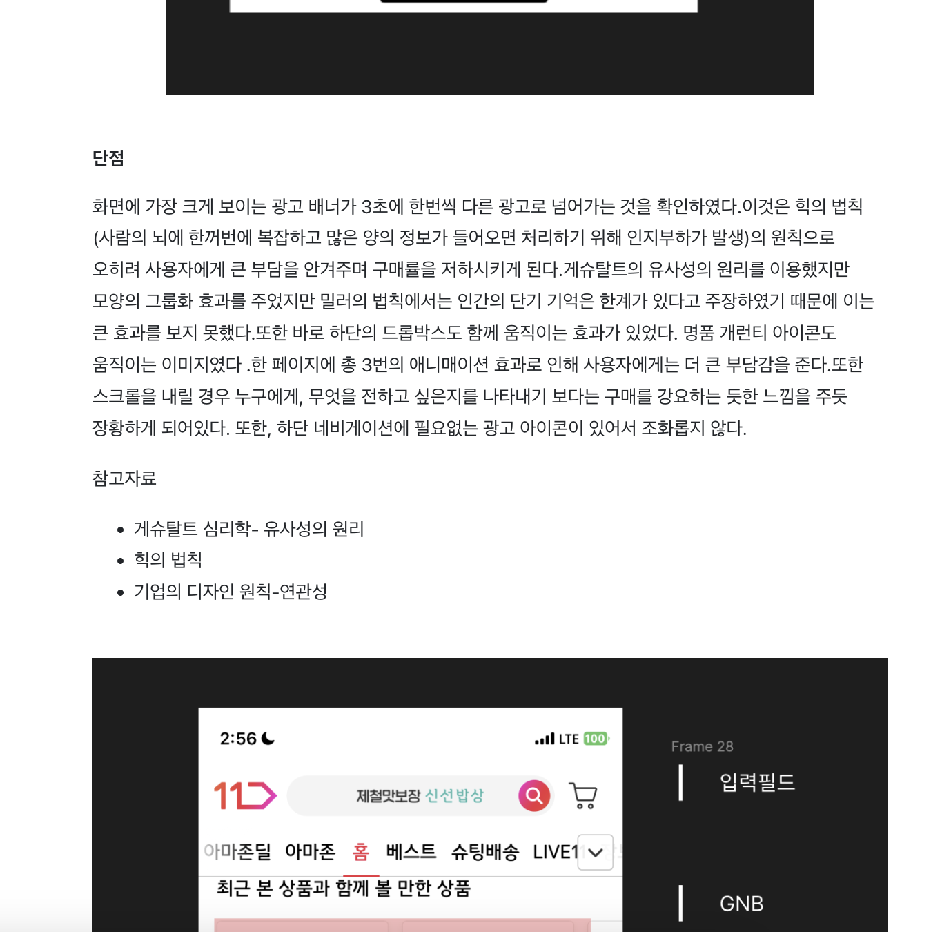 11번가 레퍼런스를 분석했다. 그 전에 기본용어의 부족함을 절실히 깨닫고 아침은 단어위주로 보았다. 장점과 단점 분석을 했지만 아직까지 부족한 부분들이 너무 많다. 오늘까지 제출하고 싶었지만 내일로 미뤄야겠다. 피그마에서도 부족한 부분들이 많이 보여서 다시 강의를 봐야겠다.