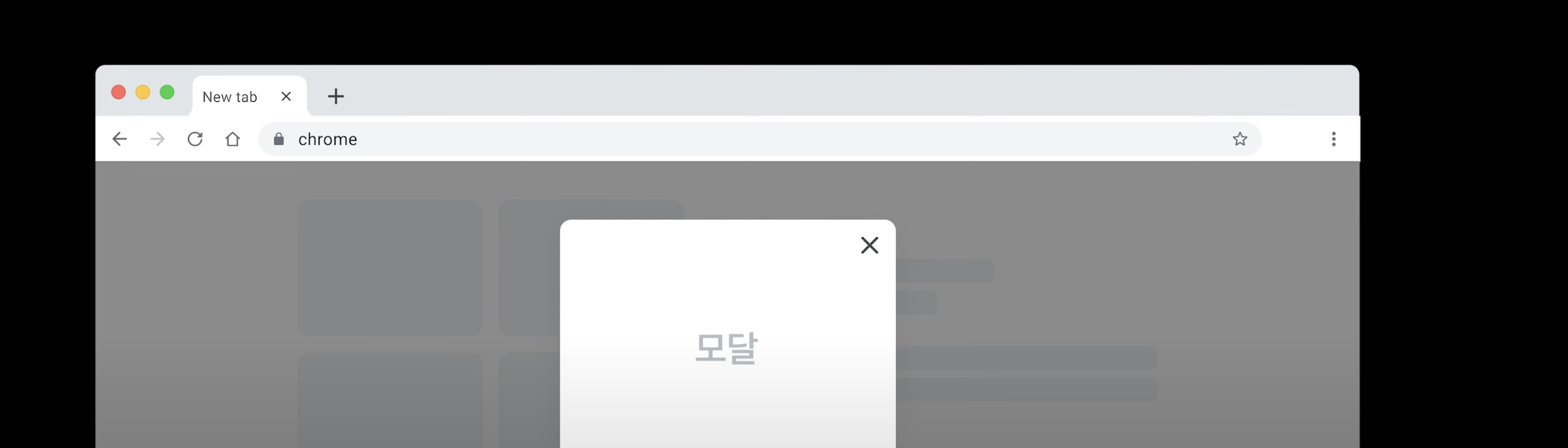 화면의 특정 부분을 어둡게 하거나 불투명도를 주어서 다른 내용이나 요소를 강조하는데 사용한다