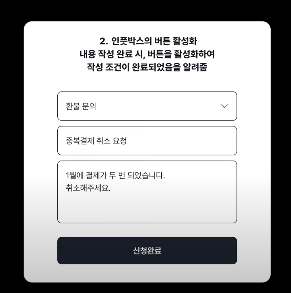 사용자가 해당 페이지를 처음 사용할 때 자주 나온다.간결하고 가독성 좋아야한다.