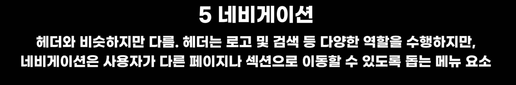 • “헤더(Header)“는 일반적으로 페이지나 앱의 상단에 위치하며, 로고, 제목, 검색 창 등을 포함합니다. 헤더는 해당 페이지의 식별 및 브랜딩을 위해 사용되며, 전반적인 네비게이션의 시작점 역할을 합니다.