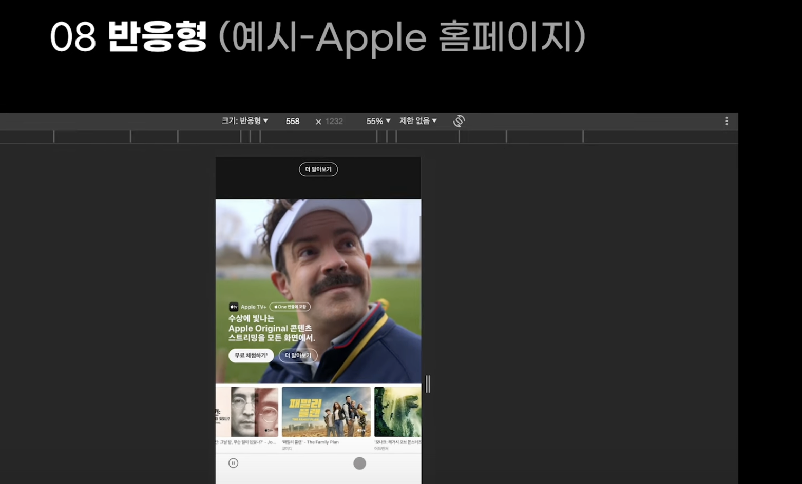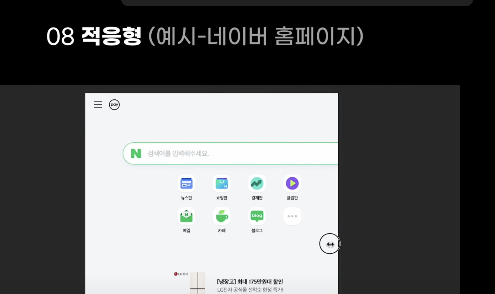 적응형은 웹과 모바일 화면은 구별해서 별도 제작한 것