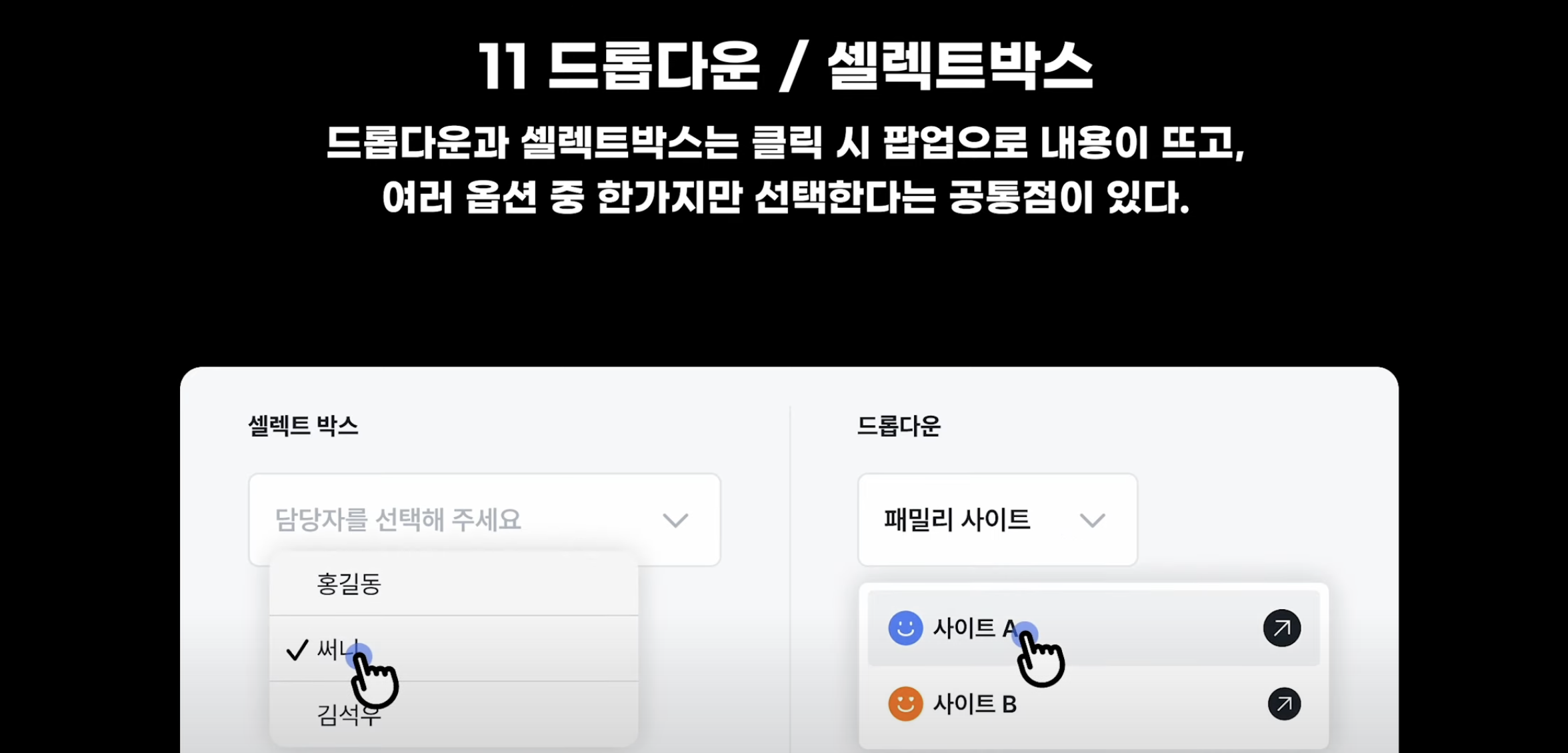 초기 기획시에 셀렉트박스와 드롭다운의 차이점을 생각하면서 명확하게 정의해야 한다.