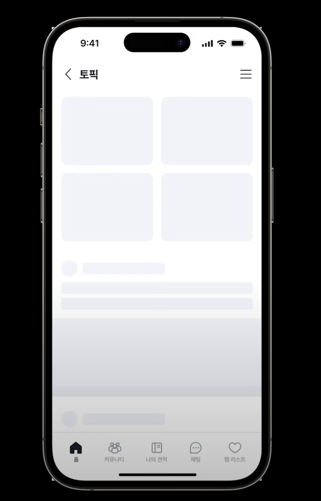 사용자에게 임시로 표현되는 레이아웃. 로딩이나 스핀으로 화면을 대처하는게 아니라 나타낼 레이아웃을 미리 보여주는 인디케이터.
