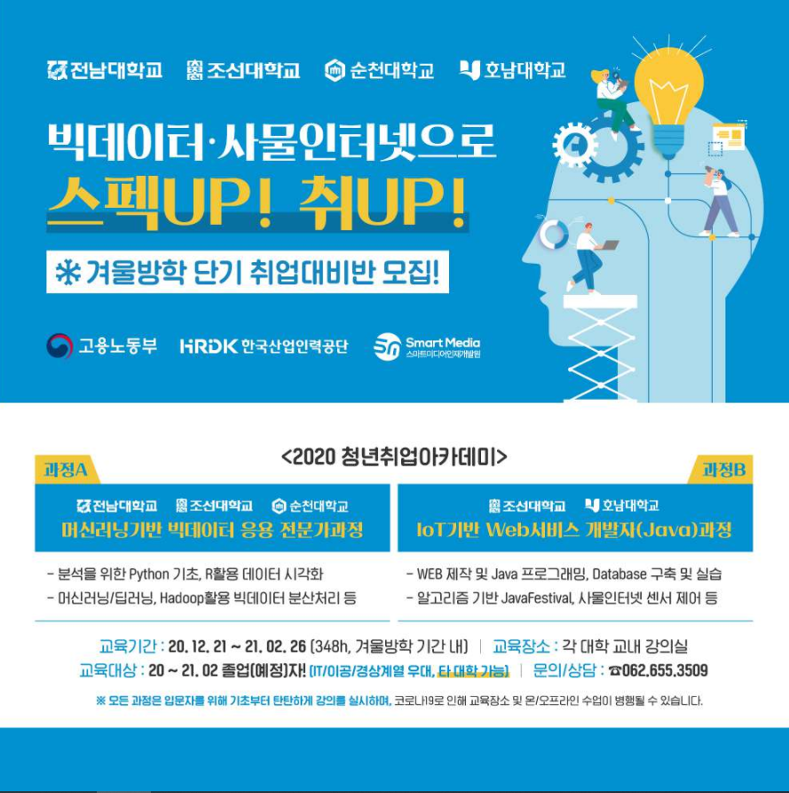 2020.07.03 실무에 도움이 될 만한 교육을 찾다 알게 되었고 커리큘럼에 내가 배우고 싶던 Java, 머신러닝/딥러닝이 있어서 수강했었다. 결론 부터 말하면 도움이 됐다. 물론 6개월이라는 시간 대비 비효율적인 결과였지만 순전히 공부 방법을 모르고, 욕심을 덜 부렸던 내 잘못이다.