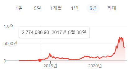 두 번째 이유인 비트코인💰도 빼놓을 수 없다. 현재도 전 세계적으로 이슈가 생기고 핫 한 키워드이다. 아직도 생생하게 기억나는게 2017년 7월 전역이었는데 말차를 복귀하고 왔더니 부대가 비트코인 열풍에 휩싸여 있었다. 맡후임이 정보를 가져와서 얼마 안되는 월급을 거기에 다 넣고 있었고, 블록체인에 관한 A4 몇백장을 인쇄하여 공부를 하고 있었다. 그 때는 말도 안되고 허황된 이야기라고 생각하고 한 귀로 듣고 한 귀로 흘렸다. 심지어 돈을 인출하는 것도 봤는데 사기라고 생각했다. 생각해보라 4년 전에 기사로 핫해지기 전에 가상화폐라는 개념이 받아들여지기 쉬웠겠는가? 결론적으로 후회했다. 그 때 가격보다 지금 약 18배 가격이 증가했으니 말이다. 그리고 궁금해졌던 것이 이게 뭐길래 돈이 되는 것인가였다.