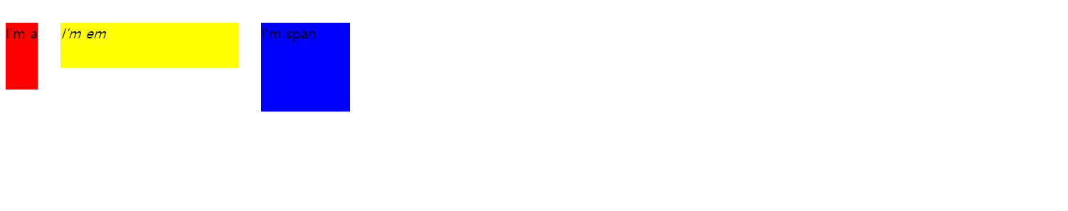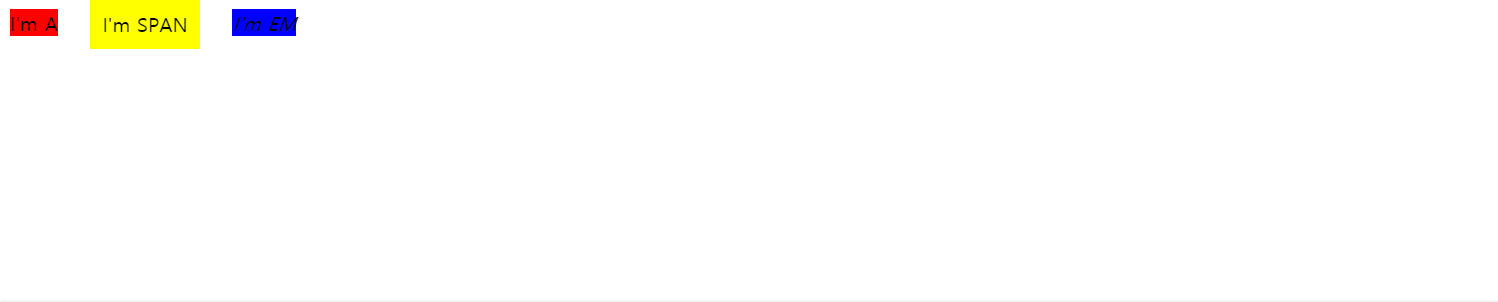 으로 지정된 엘리먼트는 전 후 줄바꿈 없이 한 줄에 다른 엘리먼트들과 나란히 배치된다.