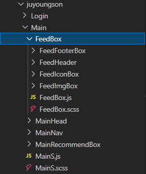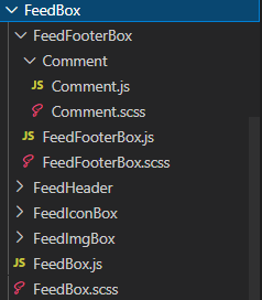 그리고 피드도 컴포넌트를 분리하였는데 피드 컴포넌트 자식에 Comment컴포넌트를 또 나누어서 피드는 피드대로 관리할 수 있고, 댓글은 댓글대로 관리할 수 있게 되었다.