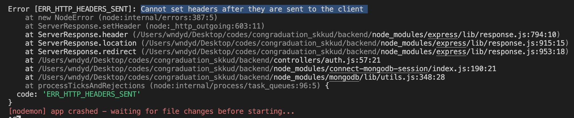 [ERR_HTTP_HEADERS_SENT]: Cannot set headers after they are sent to the client