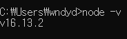 설치가 다 됐으면 윈도우 검색창에 cmd를 쳐서 커맨드라인 입력창에 node -v 를 입력하면 아래와 같이 버전이 뜰 것이다. 그러면 설치가 잘 된 거고, 아니면 안 된 거다.