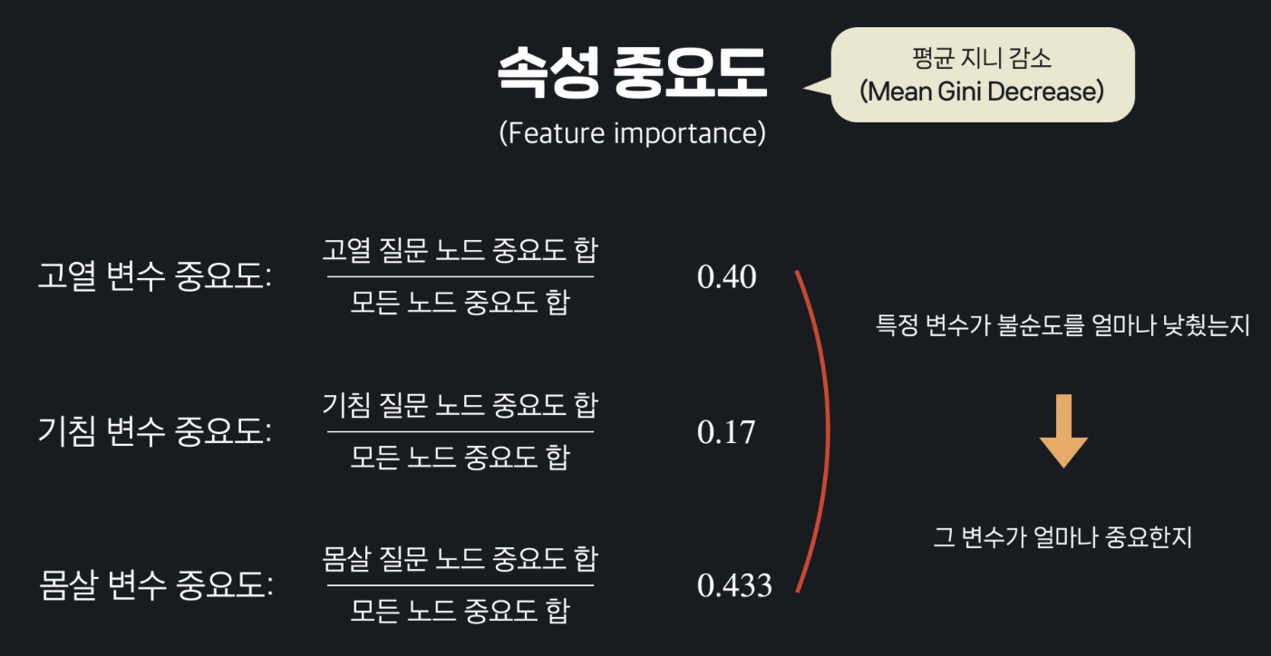 ํน์ ์์ฑ์ ์ง๋ฌธ์ผ๋ก ๊ฐ๋ ๋ ธ๋๋ค์ ์ค์๋๋ค์ ํ๊ท ๋ธ ๊ฑฐ๋ ๋น์ทํ๋ฐ, ๊ทธ๋ ๊ธฐ ๋๋ฌธ์ ์ด๋ ๊ฒ ์ต์ข ์ ์ผ๋ก ๊ตฌํ ๊ฐ์ ์์ฑ์ ํ๊ท ์ง๋ ๊ฐ์ (Mean Gini decrease)๋ผ๊ณ ๋ถ๋ฅด๊ธฐ๋ ํ๋ค.