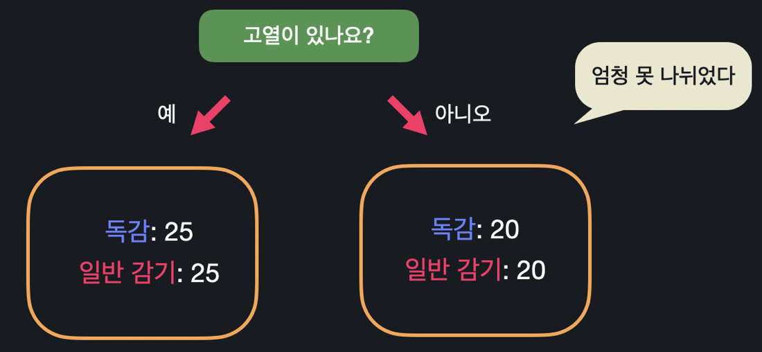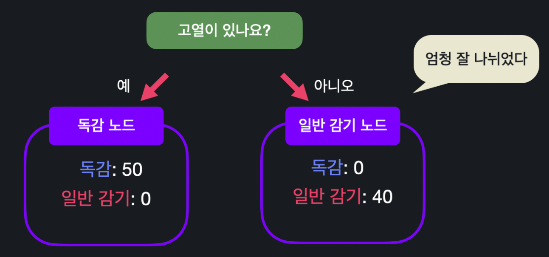 ์์ ๋ณด์ด๋ค์ํผ ๋ชธ์ด์ด ์๋๋ ์ง๋ฌธ์ '์'๋ผ๊ณ ๋ตํ๊ณ ๋ ํ ๋ค์ ๋ ธ๋๋ฅผ ์ ํ ๋๋ ํ์ต ๋ฐ์ดํฐ๊ฐ ๋ชธ์ด์ด ์๋ ๋ฐ์ดํฐ๋ค๋ก ๋ง ๊ตฌ์ฑ๋์ด ์๋ค. ๋ฐ๋ ์ด ๋ฐ์ดํฐ๋ค๋ก ๋ค์ ์ด์ ์ ํ๋ ์ง๋ ๋ถ์๋ ๋น๊ต ๊ณผ์ ์ ๊ฑฐ์น๋ฉด ๋๋ค.