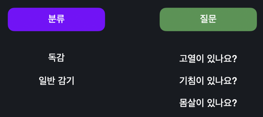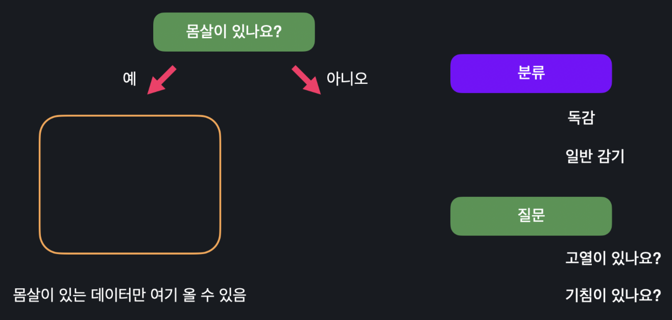 ์ฌ๊ธฐ์ ์ง๋ ๋ถ์๋๊ฐ ๊ฐ์ฅ ๋ฎ์ ๊ฒ์ โ๋ชธ์ด์ด ์๋์?โ ์ง๋ฌธ์ด๋ค. ๋ฐ๋ผ์ ์ด๊ฑธ root ๋ ธ๋๋ก ๊ณจ๋ผ์ฃผ๋ฉด ๋๋ค.