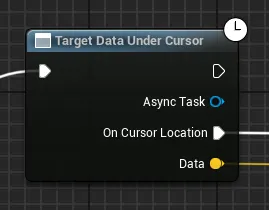 이를 통해 블루프린트에서 CreateTargetDataUnderCursor()를 호출 시, 스스로의 인스턴스가 반환되며, 기본 Output 핀 뿐만 아니라 델리게이트로 선언한 변수에 따라 추가로 Output 핀이 존재하게 된다.