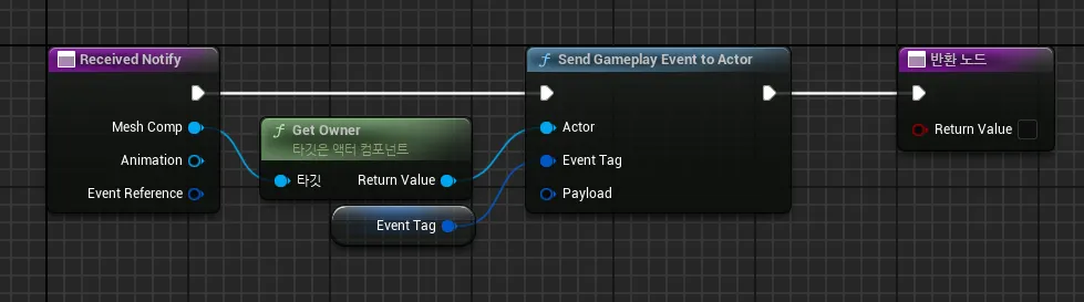 SendGameplayEventToActor를 통해 GameplayTag를 특정 액터에게 호출한다.