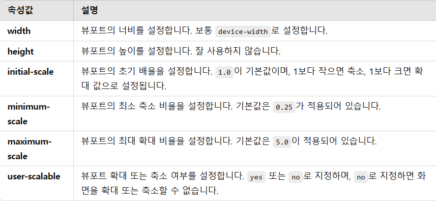 user-scalable=no 를 사용하면 저시력과 같은 시각 장애를 가진 사용자의 접근성 문제가 발생할 수 있다.