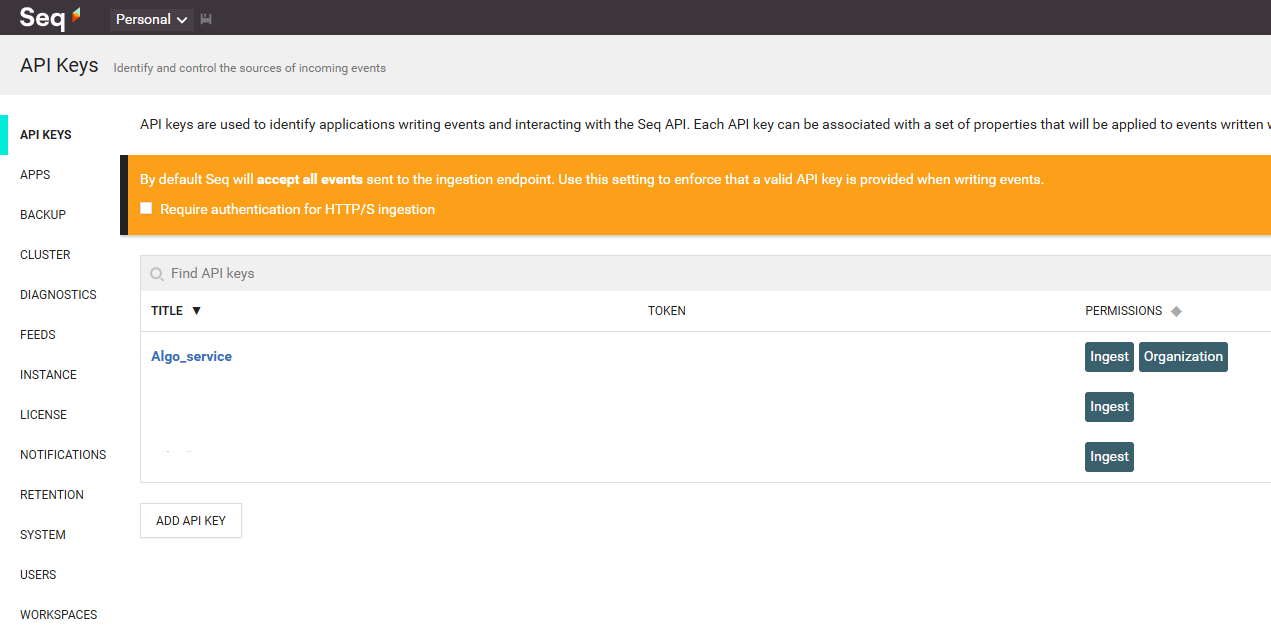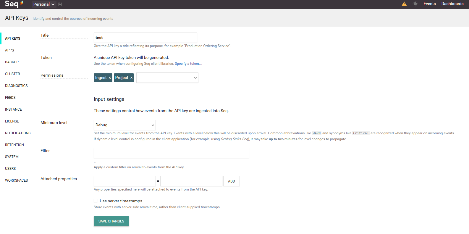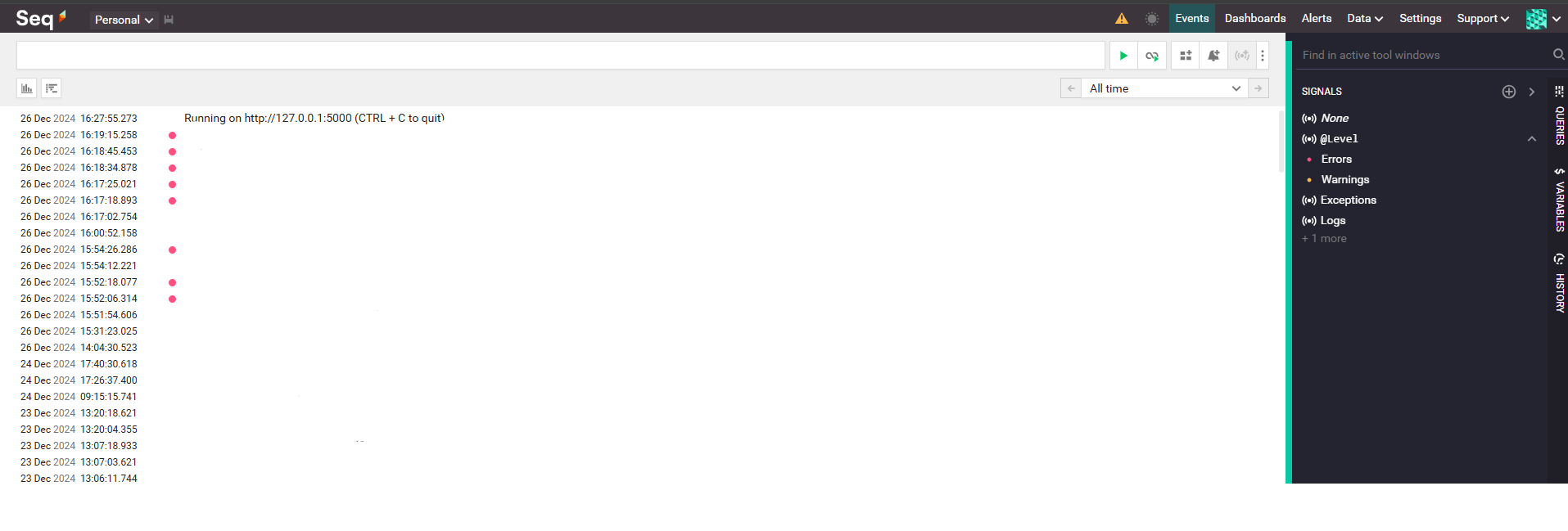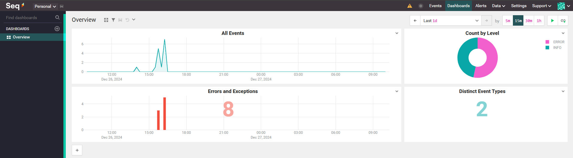 도커 이미지를 실행시키고 localhost:5341로 접속하면 아래 화면처럼 나온다.