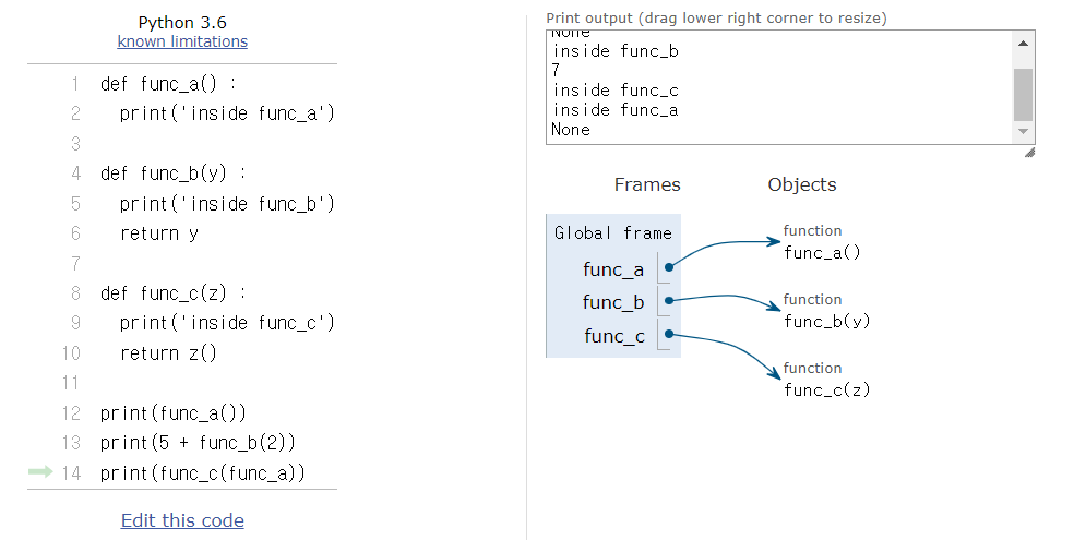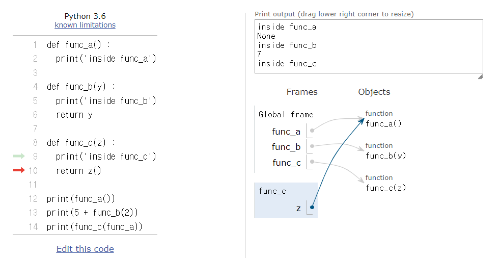 print(func_c(func_a)) 이전의 호출문은 쉬우니까 생략한다. 다음 그림을 보자.