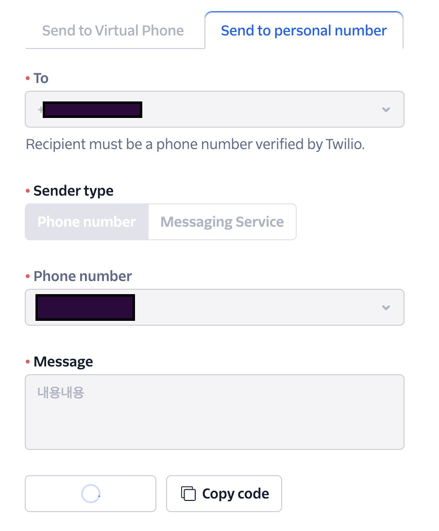 옆에 request정보와 응답 정보를 볼 수 있다. 이것을 보고 직접 코드를 작성해도 되고 twilio 패키지를 사용해도 된다.