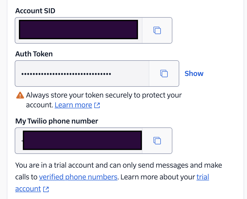 3. twilio에서 생성한 기타 계정이나 프로젝트