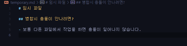 혼자 작업하는 경우에는 충돌 해결은 쉬운 편입니다.