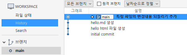 기능을 사용하면 변경사항을 되돌릴 수 있다.