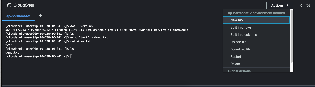 AWS에 터미널을 통해 명령을 내리는 것 대신 CloudShell 사용 가능