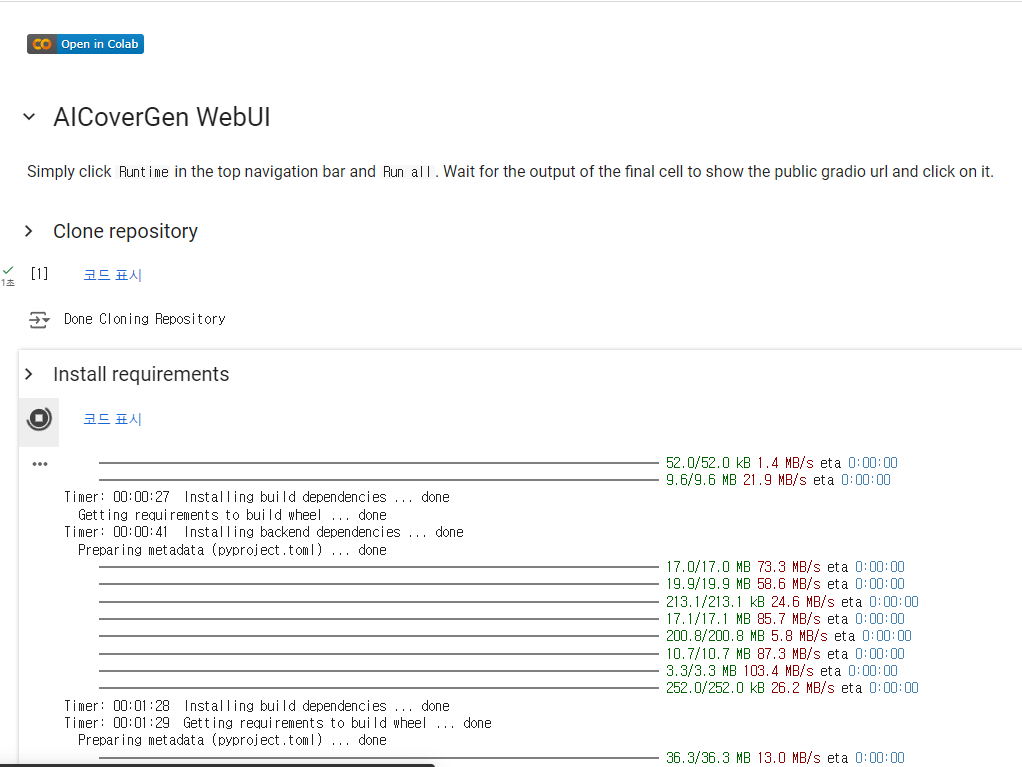 구글 colab에서 순서대로 4개의 파트를 실행하면 된다!