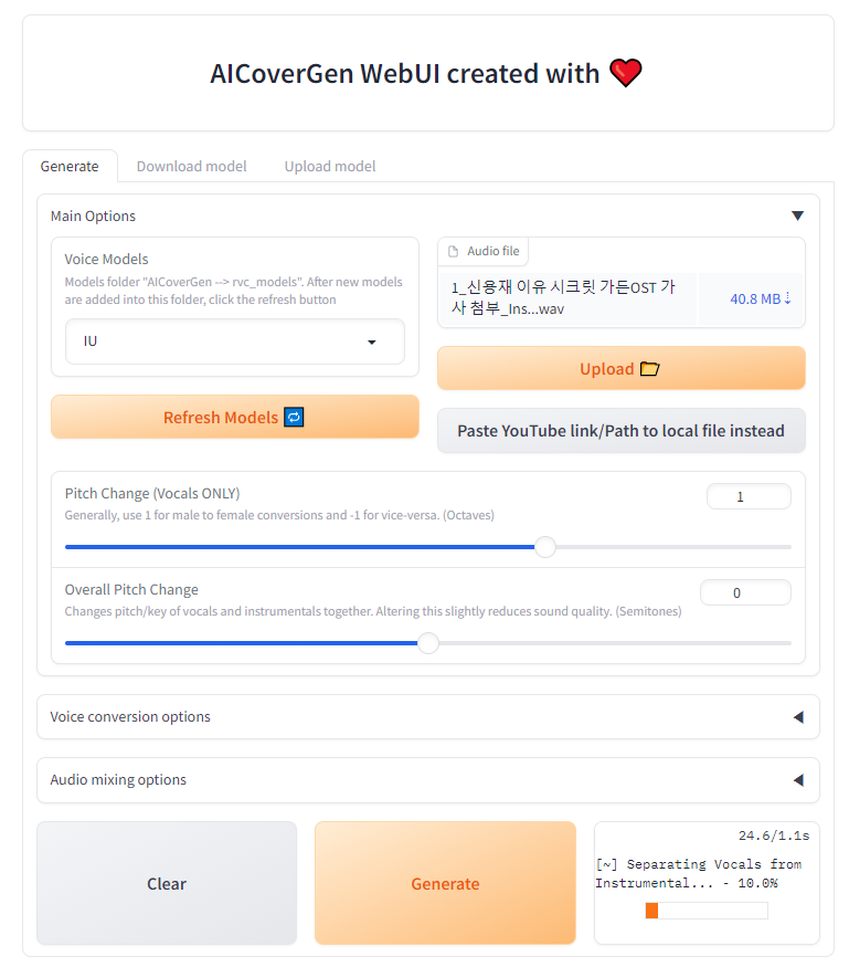 AI cover곡을 쉽게 만들 수 있는 플랫폼이 있어서 한번 활용해 보았다.