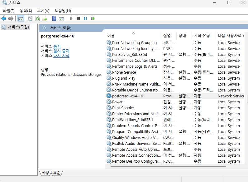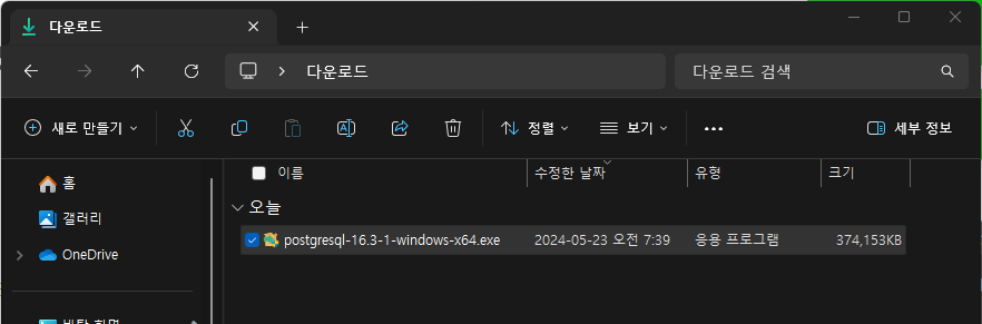 다음 사이트에서 운영체제에 맞는 postgresql을 설치 https://www.postgresql.org/download/