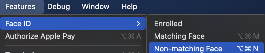 시뮬레이터에 Face ID Enrolled 후 테스트 가능
